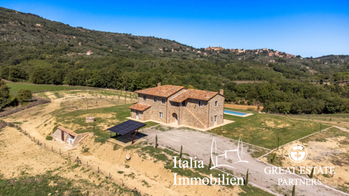 Bauernhaus im Bau mit Blick auf den Chiusi-See, PV-Anlage und Pool