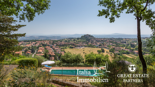 Bauernhaus im Bau mit Blick auf den Chiusi-See, PV-Anlage und Pool
