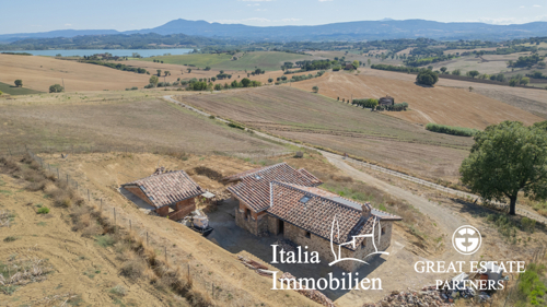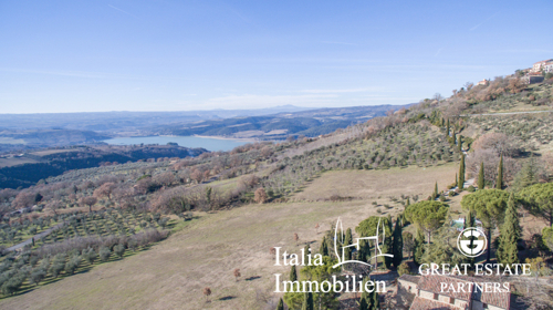 Bauernhaus im Bau mit Blick auf den Chiusi-See, PV-Anlage und Pool