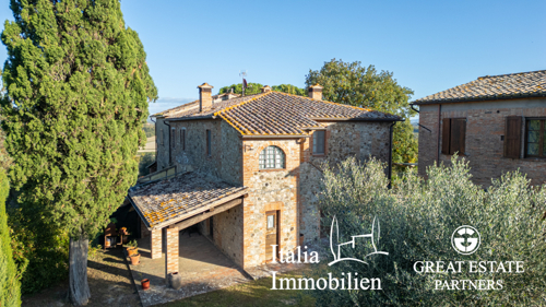 Toskanisches Juwel mit Blick auf Montepulciano mit Olivenhain und ...